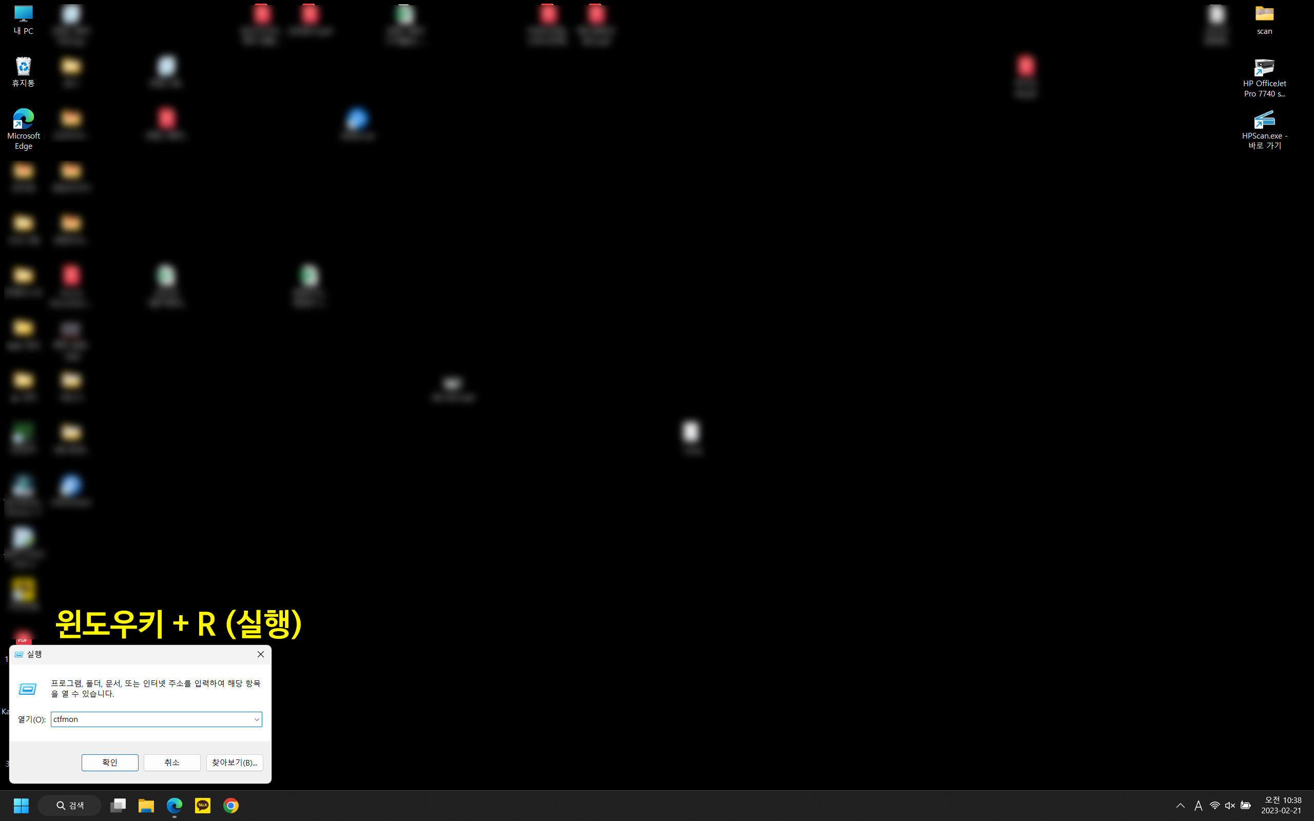 2. 실행창이 켜진 후 ctfmon 을 입력하여 엔터를 쳐줍니다.